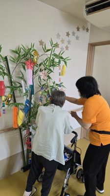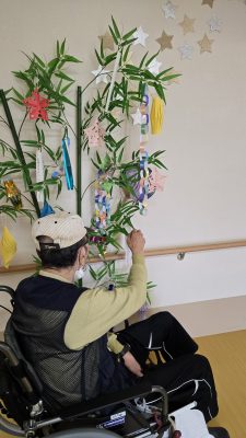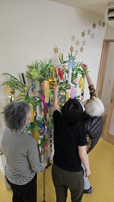 7月に入ってから皆さんで七夕の飾り付けをしました。